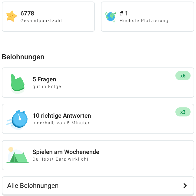 Belohnungen können jetzt täglich in der App erreicht werden. Das macht Earz für die Schüler/-innen noch motivierende ...